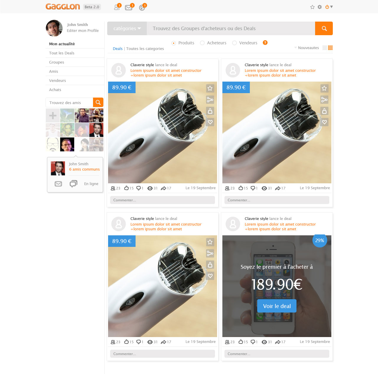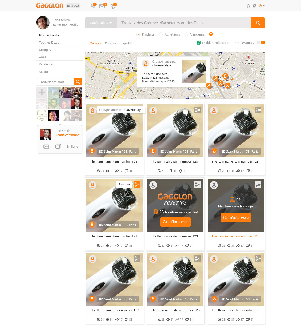 גגלון הוא אתר צרפתי ותיק שמציע ללקוחותיו רכישה קבוצתית ואישית של מוצרים במחירי מבצע בלעדית דרך האתר. האתר הגיע לאחר שרץ מספר שנים עם אותו עיצוב והיה זקוק למתיחת פנים, אפיון מחדש וליצירת שפה גרפית אחידה בתוך האתר. לאחר אפיון מחדש של מספר פיצ'רים עיקריים בתוך האתר, קריאייטיבה הציעה ללקוח עיצוב מחדש של דף הבית, דף רכישות אישי וקבוצתי חדש ותפריט שמאלי חדש. כתוצאה העיצוב התאחד לשפה אחת ברורה.